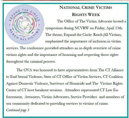 On April 7, 2014, Governor Dannel Malloy announced the creation of the Victims’ Rights Enforcement Advisory Commission (VREAC) to review the current status of crime victims’ rights in the State